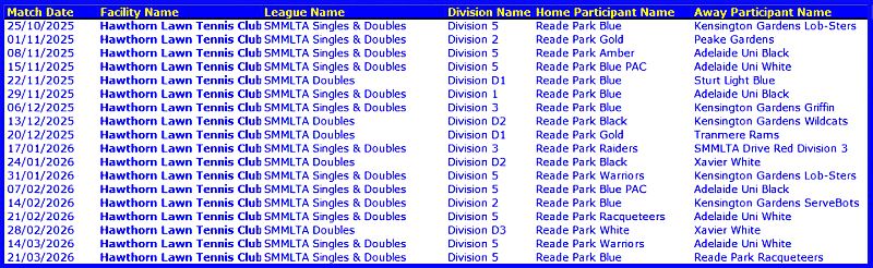 Match Centre has now been updated. All Clubs note => Tranmere and Reade Park have home matches