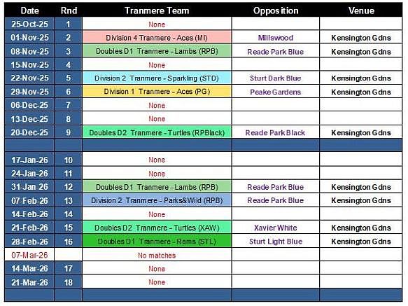 ALL players and fill-ins must be Tennis SA registered and have a UTR. Contact your club Delegate in the first instance if you have any